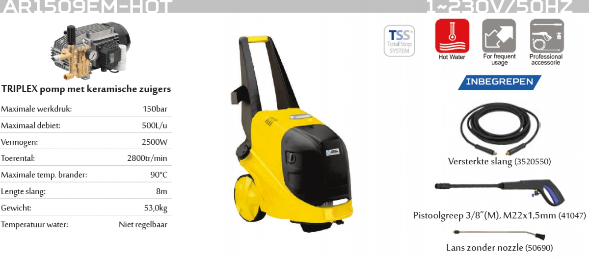 HOT1509EM-HOT Hogedrukreiniger warmwater voor professioneel gebruik